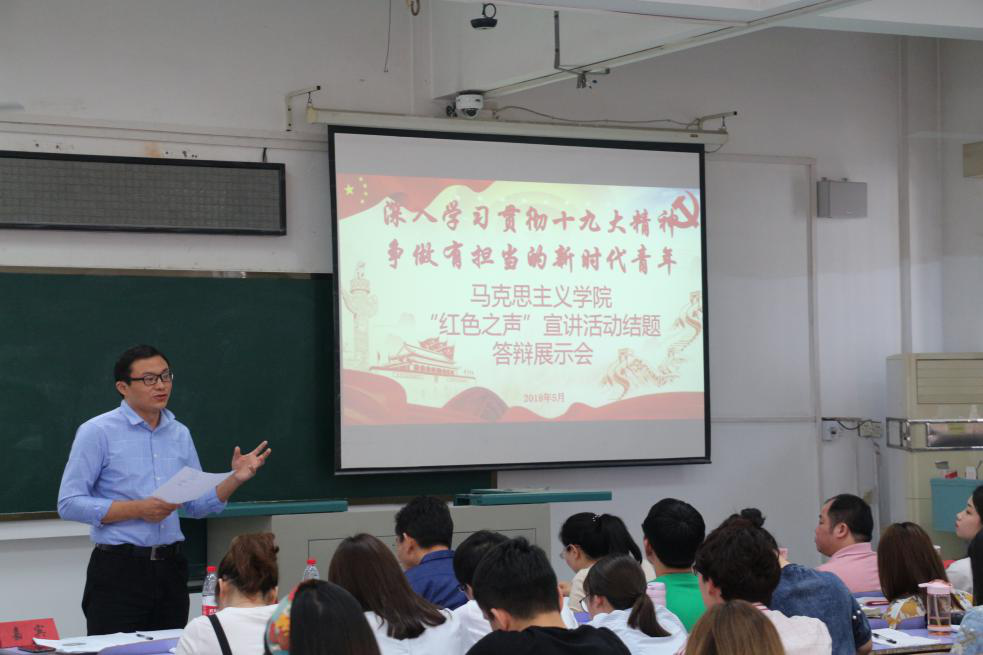 答辩结束后,学院党委书记侯志军作总结发言。侯书记对各位到场评委嘉宾表示感谢,对各团队取得的成绩表示肯定;并指出面向新时代,要有新责任,要学习“四个伟大”民族精神,要向社会学习、向群众学习、向他人学习,呼吁广大同学积极参与“红色之声”的宣讲活动。