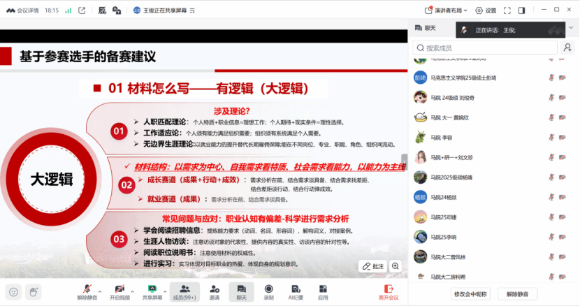 11月14日晚,海洋学院、李四光学院、马克思主义学院、教育研究院四院联合举办“职业生涯规划大赛”线上培训。王俊老师为参赛同学讲解职业规划材料如何撰写以及答辩注意事项。线上共吸引了300余名学生参加培训,老师的精彩讲解收获了广大师生的一致好评。