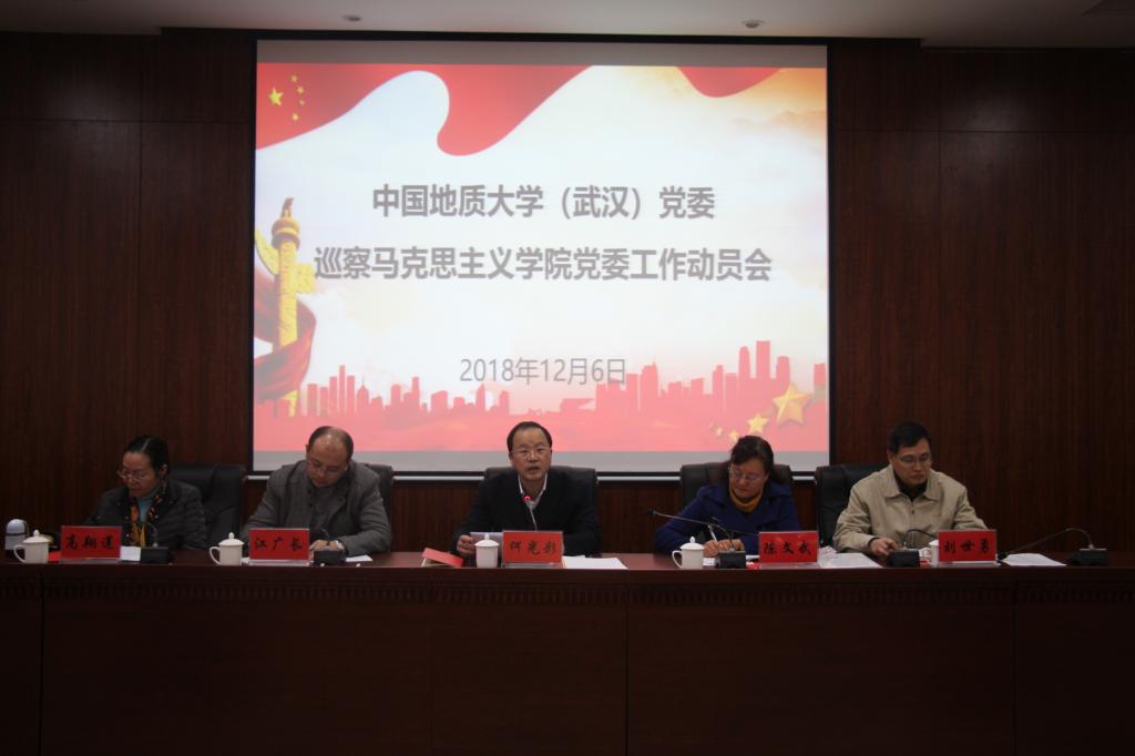(通讯员 王艳波)2018年12月6日,中国地质大学(武汉)党委巡察马克思主义学院党委工作动员会在教学综合楼A708报告厅召开。学校党委书记、学校党委巡察工作领导小组组长何光彩,学校党委第四巡察组组长陈文武、副组长江广长,巡察组成员黄菊、王莉、江丰伟,学院全体教职工、离退休老同志代表、学生代表等60余人参加会议。马克思主义学院院长高翔莲主持会议。