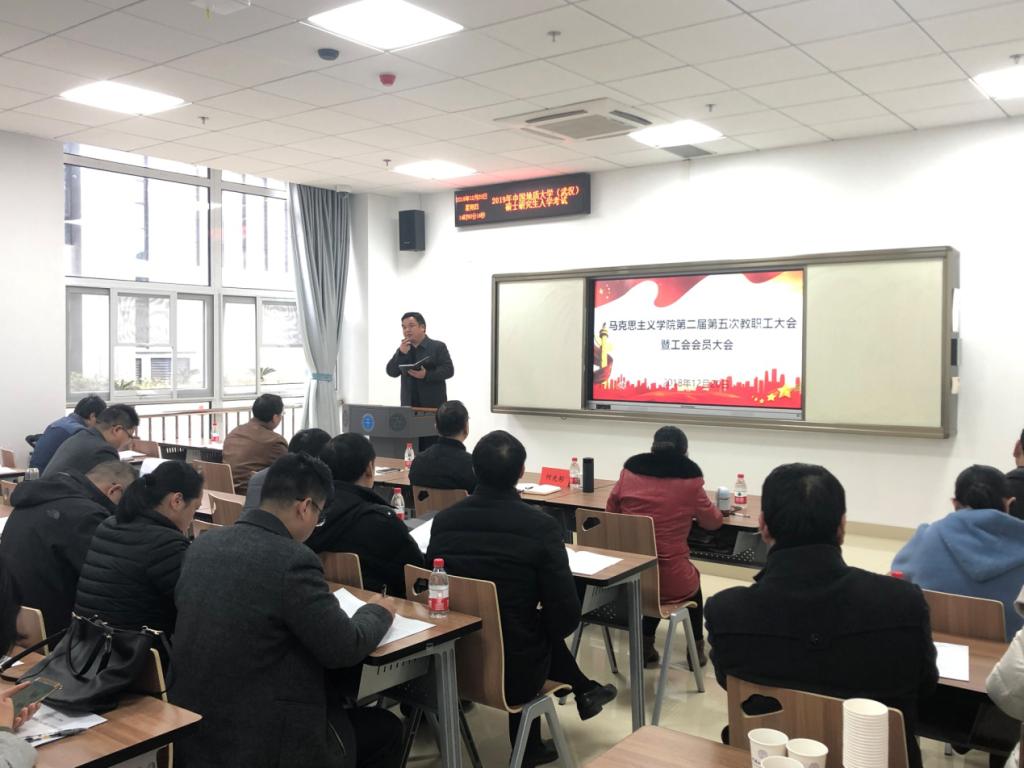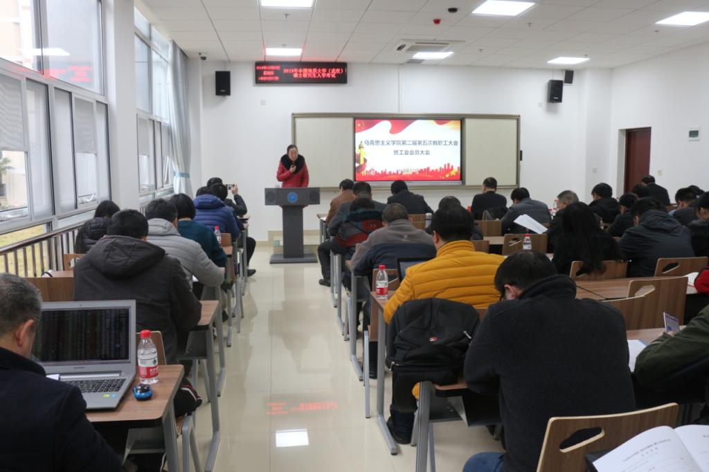 大会由奏唱《中华人民共和国国歌》拉开序幕。校工会常务副主席喻芒清宣读《中国地质大学(武汉)工会委员会关于同意马克思主义学院召开第二届教职工大会第五次会议暨第二届工会会员大会第五次会议的批复》并讲话。