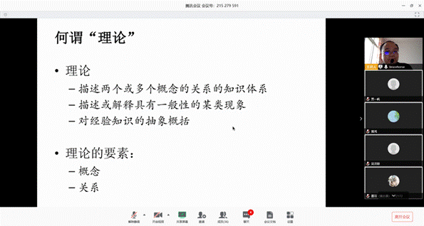 课堂讨论环节则由学生以小组形式围绕特定话题进行讨论,并由小组派代表进行发言(小组代表采用轮流制)。发言方式或采用直接语音,或者在腾讯会议的聊天窗口进行。为鼓励学生参与讨论,会设置相应奖励。课堂讨论实例如下: